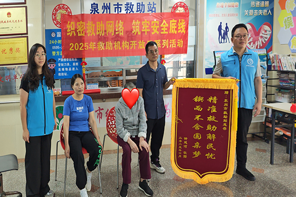 泉州市救助站每年定期对鲤城区、丰泽区、洛江区、台商投资区已落户安置的长期滞留人员进行回访,更新身份信息并通过今日头条、公安等寻亲平台发布寻亲公告。在近期,2013年救助入站的长期滞留人员“来云”寻亲成功,泉州市救助站历经12年持续努力,通过DNA比对、跨区域协作,最终促成其与儿子钟某团聚。6月6日,钟某一家向泉州市救助站赠送锦旗,感谢泉州市救助站和各方单位帮助他们一家团圆。