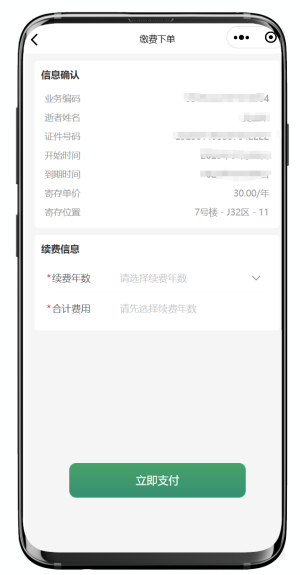 ②选择缴费年数,支付成功后,即可完成寄存缴费流程。