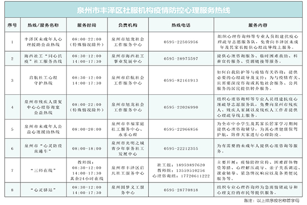 疫情无情,人间有爱,在泉州市、区两级民政的领导下,全区6家社工机构、8个街道社工站、59名社会工作者坚守在疫情防控一线,有序参与辖区疫情防控服务工作,通过“社工+志愿者”、“社工+心理咨询师”、“社工+社区+社会组织”、“社工+公益资源”等多种模式,开展线上线下服务,确保人民群众生命财产安全和经济社会秩序正常。他们用实际行动践行社工理念,发挥专业作用,展现社工担当。