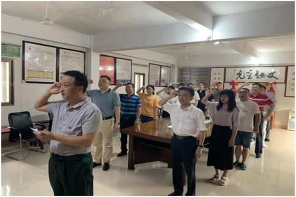 金浦社区红色革命遗址位于金浦社区吴氏祠堂,社区书记吴国情介绍,吴氏祠堂曾是地下党活动的秘密基地,革命先辈洪椰子曾在金浦村居住过数月,并于此开展一系列革命活动。在现场,党员们通过听解说、读史料,近距离感受舍生忘死的革命精神,重温烈士的英勇事迹和革命精神并在党旗下重温入党誓词。